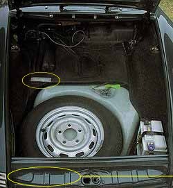 • Ruitensproeiertankje in voorzijde bagageruimte